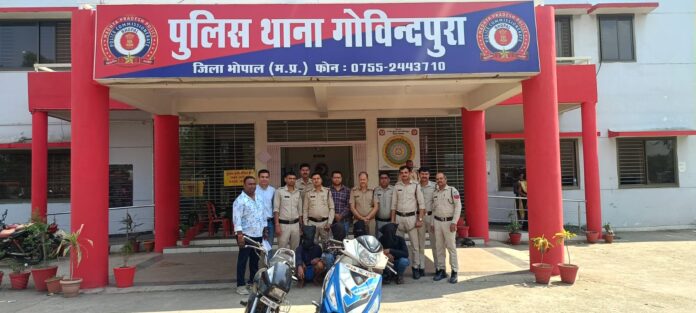 भोपाल। राजधानी की गोविंदपुरा थाना पुलिस ने मुस्तैदी दिखाते हुए डकैती की एक बड़ी साजिश को नाकाम कर दिया है। पुलिस ने भेल (BHEL) क्षेत्र के खंडहर क्वार्टरों में दबिश देकर दो नाबालिगों सहित कुल 6 आरोपियों को गिरफ्तार किया है। ये आरोपी विजय मार्केट बरखेड़ा स्थित दो ज्वेलरी दुकानों में डकैती डालने की योजना बना रहे थे।