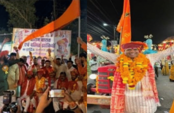 भगवान राम विद्युत सज्जायुक्त हंस रथ में अपने भ्राता लक्ष्मण और महर्षि विश्वामित्र के साथ विराजमान हुए। रथ के आगे और पीछे बैंड व तासे चल रहे थे। रामजी की निकली सवारी और अवध से चले राम मिथिला की ओर जनकपुरी में बाजे शहनाई आदि गीतों की धुन बजाई जा रही थी। रास्ते में कई स्थानों पर लोगों के द्वारा भगवान राम की आरती की गई। साथ ही एक दर्जन स्थानों पर पुष्प वर्षा हुई।