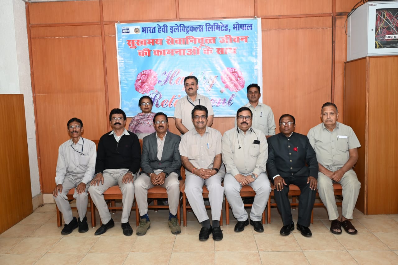 बीएचईएल भोपाल के प्रशासनिक भवन में आयोजित एक सादे कार्यक्रम में एसएम रामनाथन, कार्यपालक निदेशक, बीएचईएल, भोपाल ने विजय कुमार हिरकने, अधिकारी (चिकित्सा), 03 पर्यवेक्षक एवं 01 कर्मचारी को सेवानिवृत्त होने पर भावभीनी विदाई देते हुए कहा कि आप सभी अपने जीवन के द्वितीय पारी को सार्थक बनाएं और स्वस्थ रहते हुए अधिक से अधिक आनंद उठाएं।