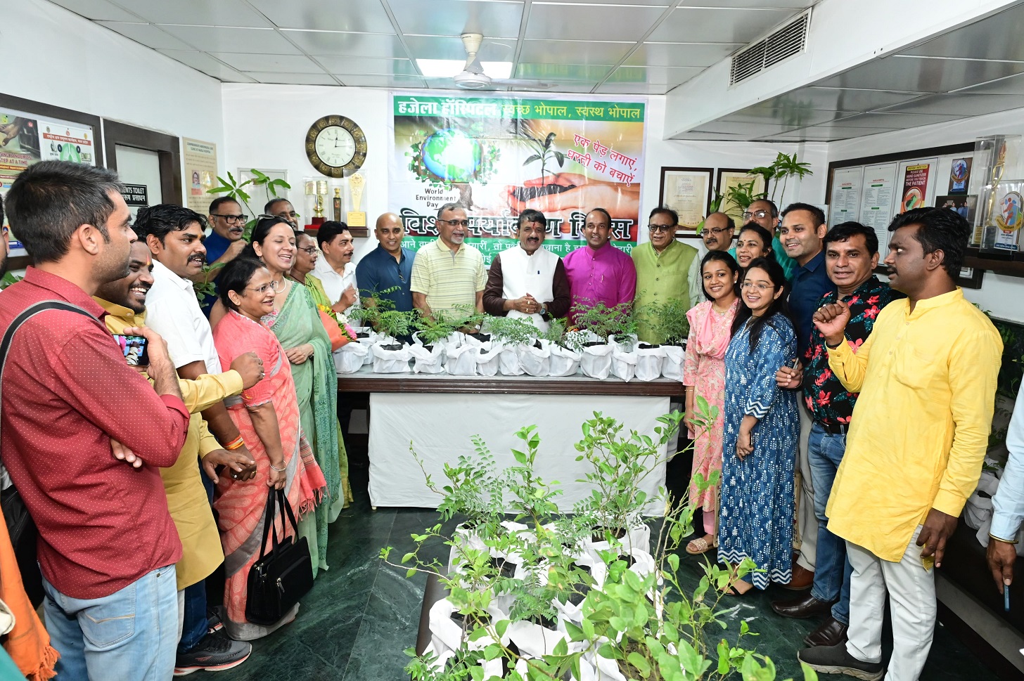 विश्व पर्यावरण दिवस के अवसर पर नर्सिंग एसोसिएशन के द्वारा हजेला हॉस्पिटल भोपाल में पर्यावरण मित्रों को पौधों का वितरण कर विश्व पर्यावरण दिवस मनाया। इस अवसर पर भोपाल नगर निगम अध्यक्ष किशन सूर्यवंशी, नर्सिंग एसोसिएशन के अध्यक्ष डॉ अनूप हजेला, डॉ दीपक शाह, डॉ अभिजीत देशमुख, डॉ उमेश शारदा, डॉ रणधीर सिंह एवं अन्य गणमान्य लोग मौजूद थे।