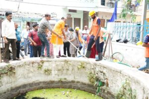 अंबेडकर नगर में कुंए की सफाई के लिए किया श्रमदान