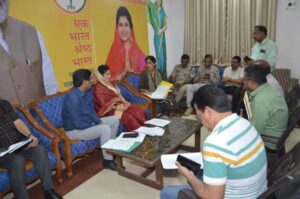 अधिकारियों ने बैठक में बताया कि प्रभातम हाइट्स में 7 में से 6 लिफ्ट का काम पूरा हो चुका है, बची हुई एक लिफ्ट का काम भी एक हफ्ते के अंदर पूरा कर लिया जाएगा। राज्यमंत्री कृष्णा गौर ने सड़क, बोरवेल और बिजली कनेक्शन के सर्वे को भी शीघ्र पूर्ण करने के निर्देश अधिकारियों को दिए। उन्होंने कहा कि यहां के रहवासियों ने स्विमिंग पूल की जगह गार्डन और क्लब हाउस बनाने की मांग की है। उन्होंने एमजीएम में सड़क बनाने के कार्य में तेजी लाने के लिए कहा, साथ ही पिपलानी सेक्टर में सड़क के लिए बाधा बन रहे अवैध निर्माण को तोड़ने का प्रस्ताव कलेक्टर को भेजे जाने के लिए अधिकारियों को निर्देशित किया।