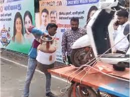 ठेले पर स्कूटी-सिलेंडर रखकर महिला कांग्रेस का प्रदर्शन, पुलिस से हुई झड़प