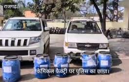 राजस्थान पुलिस ने मध्य प्रदेश की राजगढ़ पुलिस के साथ मिलकर एक बड़ी संयुक्त कार्रवाई करते हुए गोधटपुर गांव में संचालित एक अवैध ड्रग्स फैक्ट्री पर छापेमारी की है। इस बड़ी कार्रवाई के दौरान पुलिस टीम ने मौके से लगभग 4 करोड़ रुपये मूल्य के केमिकल और ड्रग्स बनाने के उपकरण जब्त किए हैं।