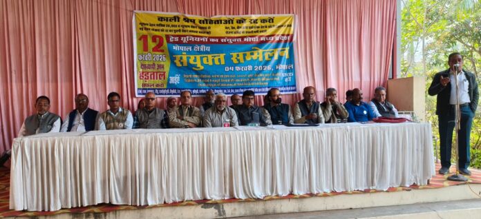 केंद्र सरकार की नीतियों, श्रम संहिताओं और निजीकरण के विरोध में आगामी 12 फरवरी 2026 को संपूर्ण देश सहित मध्य प्रदेश और भोपाल में विशाल प्रदर्शन किया जाएगा। इस देशव्यापी आम हड़ताल को सफल बनाने के उद्देश्य से ‘ट्रेड यूनियनों के संयुक्त मोर्चा’ द्वारा रविवार को भोपाल में एक संभागीय सम्मेलन का आयोजन किया गया, जिसमें सैकड़ों की संख्या में श्रमिक नेताओं और कर्मचारियों ने भाग लिया।