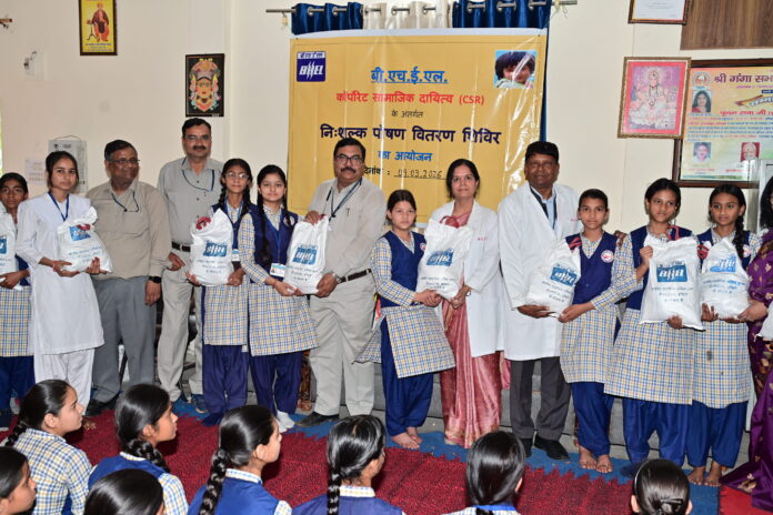 बीएचईएल हरिद्वार द्वारा कॉर्पोरेट सामाजिक दायित्व (सीएसआर) के अंतर्गत, ज्वालापुर स्थित राजकीय बालिका इंटर कालेज, में छात्राओं हेतु, एक निःशुल्क पोषण वितरण शिविर का आयोजन किया गया । बीएचईएल चिकित्सा विभाग के सहयोग से आयोजित इस शिविर का शुभारम्भ, महाप्रबंधक (मानव संसाधन)  संतोष कुमार गुप्ता एवं प्रमुख (चिकित्सा सेवाएँ) डॉ. शारदा स्वरुप ने किया । कार्यक्रम को सम्बोधित करते हुए संतोष कुमार गुप्ता ने कहा कि आज का यह शिविर बच्चों की शिक्षा और उनके समग्र विकास की आधारशिला है। श्री गुप्ता ने बताया कि बीएचईएल, शिक्षा से जुड़े सामाजिक कार्यों के लिए सदैव प्रतिबद्ध रहा है और समाज के हित में लगातार कार्य कर रहा है।