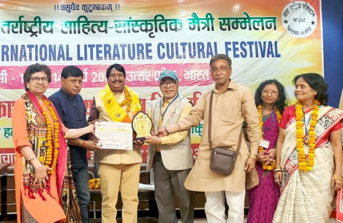 प्रगति विचार एवं साहित्य मंच, बुलंदशहर और चारु साहित्य प्रतिष्ठान, नेपाल के संयुक्त तत्वावधान में वाराणसी के दुर्गाकुंड स्थित श्री हनुमान प्रसाद पोद्दार अंध विद्यालय में ‘भारत-नेपाल अंतर्राष्ट्रीय साहित्य एवं सांस्कृतिक मैत्री सम्मेलन’ का भव्य आयोजन किया गया। इस गौरवशाली अवसर पर मध्य प्रदेश की राजधानी भोपाल के प्रसिद्ध साहित्यकार एवं बीएचईएल के सेवानिवृत्त अधिकारी सुरेश सोनपुरे ‘अजनबी’ को उनके उत्कृष्ट साहित्यिक योगदान के लिए ‘अंतर्राष्ट्रीय काशी विश्वनाथ साहित्य शिरोमणि सम्मान’ से सम्मानित किया गया। साहित्यिक आदान-प्रदान का संगम बर्दघाट प्रज्ञा प्रतिष्ठान, लुम्बिनी (नेपाल) के कुलपति डॉ. घनश्याम न्यौपाने की अध्यक्षता में आयोजित इस सम्मेलन में भारत और नेपाल के लगभग 100 रचनाकारों ने शिरकत की। कार्यक्रम के मुख्य आयोजक डॉ. हरेंद्र हर्ष (बुलंदशहर) और डॉ. देवी पंथी (नेपाल) के मार्गदर्शन में चले इस सम्मेलन में गीत, गजल, कविता, लघु कथा और शोध पत्र वाचन के विभिन्न सत्र आयोजित हुए। ‘अजनबी’ की रचना ने मोहा मन भोपाल से प्रतिनिधि के रूप में शामिल हुए सुरेश सोनपुरे ‘अजनबी’ ने जब अपनी पंक्तियां पढ़ीं—”सीधे सादे भोले भाले हम सच्चे बन जाएं,