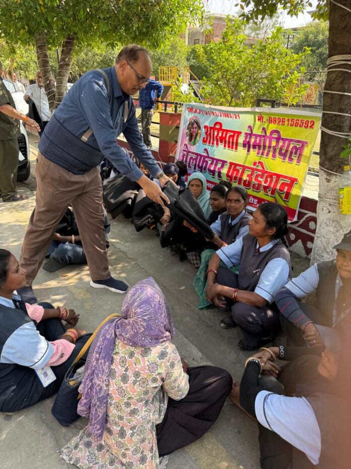 अस्मिता मेमोरियल वेलफेयर फाउंडेशन मंगलवार को न्यू मिनाल रेजिडेंसी में कार्यरत महिला सफाई कर्मियों को संस्था के कोषाध्यक्ष सुरेश चंद साहू के सौजन्य से 50 कम्बल वितरित किए गए भोपाल में कड़ाकेदार ठंड को मद्देनजर ये शुभ कार्य किया गया ।इस अवसर पर संस्था के संस्थापक अशोक डाहरे अध्यक्ष निर्मल बोवाडे तथा मिनाल रेजिडेंसी में निवासरत भेल के पूर्व महाप्रबंधक अविनाश चंद्रा सर की गरिमामय उपस्थिति में सम्पन्न हुआ।