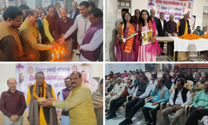 दीपावली के पावन पर्व पर वैश्य समाज की एकता और स्नेह का अनोखा संगम देखने को मिला, वैश्य महासम्मेलन जिला भोपाल की युवा इकाई और महिला इकाई द्वारा आयोजित ‘दीपावली मिलन एवं वरिष्ठ जनों का सम्मान’ कार्यक्रम जैन मंदिर, टीन शेड के पास, टीटी नगर में आयोजित किया गया ।  इस अवसर पर पूर्व मध्यप्रदेश मंत्री उमाशंकर गुप्ता मुख्य अतिथि एवं  सुधीर अग्रवाल विशेष अतिथि के रूप में मौजूद थे।