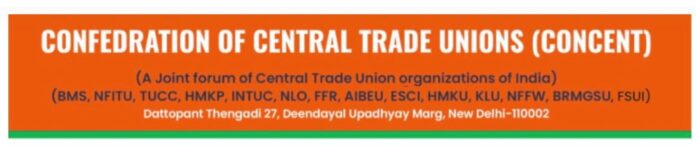 मंगलवार को देश के 14 मान्यता प्राप्त राष्ट्रीय श्रमिक संगठनों के संयुक्त मंच कॉन्फ़ेडरेशन ऑफ़ सेंट्रल ट्रेड यूनियन (कंसेंट) की राष्ट्रीय वर्चुअल बैठक आयोजित की गई। बैठक की अध्यक्षता भारतीय मजदूर संघ के अध्यक्ष हिरण्मय पंड्या ने की, जिसमें देश की प्रमुख संगठनों के शीर्ष प्रतिनिधियों ने भाग लिया और हाल ही में देश में लागू हुए चारों नए श्रम संहिताओं पर विस्तृत विचार-विमर्श किया। बैठक का संचालन बीएमएस के महामंत्री रविन्द्र हिमते एवं कंसेंट के राष्ट्रीय संयोजक एवं एनएफआईटीयू के राष्ट्रीय अध्यक्ष डॉ. दीपक जायसवाल ने किया साथ ही बीएमएस के अखिल भारतीय संगठन मंत्री बी.सुरेन्द्रन ने सभी संगठन के प्रतिनिधियों को एक्शन प्लान के बारे में मार्गदर्शन दिया.