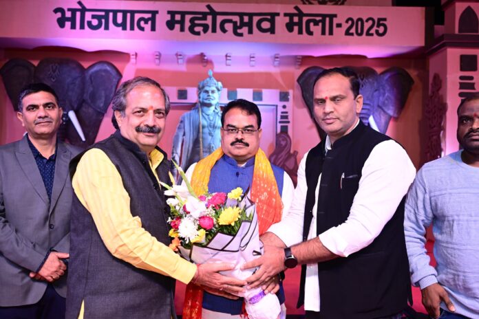 भोपाल. राजधानी के भेल दशहरा मैदान पर चल रहा भोजपाल महोत्सव मेला अपने अंतिम पड़ाव की ओर है। 1 जनवरी तक चलने वाले मेले में रोजाना शहर के साथ ही आसपास क्षेत्रों से लाखों की संख्या में लोग परिवार और दोस्तों के साथ मेला देखने पहुंच रहे हैं। मेला के सांस्कृतिक मंच पर रोजाना सांस्कृतिक कार्यक्रमों की प्रस्तुतियां दी जा रही हैं। मंगलवार को म्यूजिक बैंड की प्रस्तुति दी गई। शाम 7.30 बजे मुख्य अतिथि प्रभारी मंत्री चैतन्य काश्यप, विशिष्ट अतिथि तुषार कांत विद्यार्थी डीआईजी, राजेश सिंह चंदेल डीआईजी भोपाल ग्रामीण, रेणुका चंदेल, भोपाल भाजपा जिला अध्यक्ष रविंद्र यति, मेला अध्यक्ष सुनील यादव, संजोयक विकास वीरानी, महामंत्री हरीश कुमार राम, उपाध्यक्ष वीरेंद्र तिवारी, महेंद्र नामदेव, अखिलेश नगर सहित मेला टीम ने गणेश वंदना और दीप प्रज्जवलित कर कार्यक्रम का शुभारंभ किया।