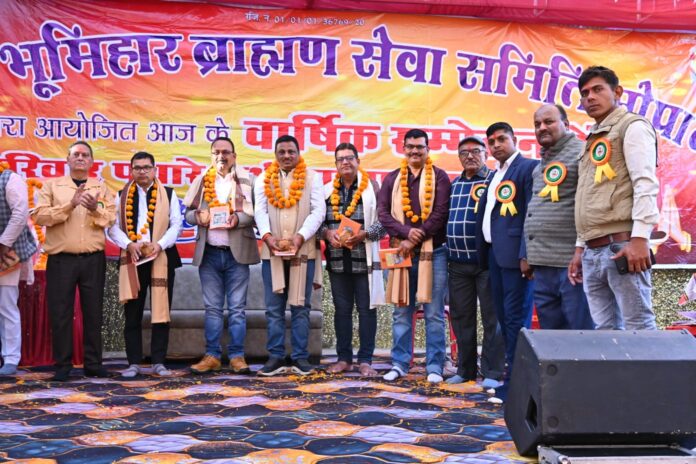 भोपाल. बेटी बचाओ, बेटी पढ़ाओ, पानी बचाओ, पर्यावरण संरक्षण, स्वच्छ शहर का संकल्प लेते हुए प्रांतीय भूमिहार ब्राह्मण सेवा समिति का वार्षिक सम्मेलन आयोजित किया गया। राजधानी के रत्नागिरी तिराहा स्थित तरुण पुष्कर मैरिज गार्डन में गुरुवार को आयोजित कार्यक्रम में इंदौर, देवास, मंडीदीप, सीहोर, विदिशा, ओबेदुल्लागंज, उज्जैन, जबलपुर होशंगाबाद सहित अन्य जिलों और कस्बों से भारी संख्या में प्रांतीय भूमिहार ब्राह्मण समाज के एक हजार से ज्यादा लोग मौजूद रहे। कार्यक्रम की शुरुआत मुख्य अतिथि प्रभात कुमार सिन्हा विशिष्ट अतिथि संजय कुमार, अभय शर्मा, नीरज ठाकुर ने इष्ट देव परशुराम एवं दंडी स्वामी सहजानंद सरस्वती की पूजा अर्चना के साथ की गई।