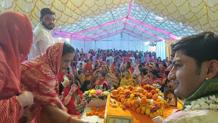 कार्यक्रम के अंतर्गत उपस्थित सभी महिलाओं को माता जी को अर्पित साड़ी-चुनरी एवं सुहाग सामग्री भेंट की गई। सायंकाल मंदिर परिसर में भगवान शिव जी, माता दुर्गा जी एवं श्री दादाजी गुरुदेव (साईंखेड़ा वाले) की विधिवत आरती सम्पन्न हुई।इसी क्रम में आयोजित खाटू श्याम जी की भजन संध्या में भावनात्मक एवं भक्तिमय वातावरण देखने को मिला। भजन गायक उत्कर्ष अग्रवाल (सीहोर), कान्हा व्यास (ग्वालियर), विष्णु शर्मा (ब्यावरा), निकुंज शर्मा (कुंभराज) एवं आशु शर्मा (जीरापुर) द्वारा प्रस्तुत “हारे का सहारा श्याम हमारा”, “जो भी मांगा वो पाया है श्याम दरबार से”, “श्याम तेरी बंसी पुकारे” एवं “सांवरे की महिमा अपरंपार है” जैसे भजनों ने श्रद्धालुओं को भाव-विभोर कर दिया।
