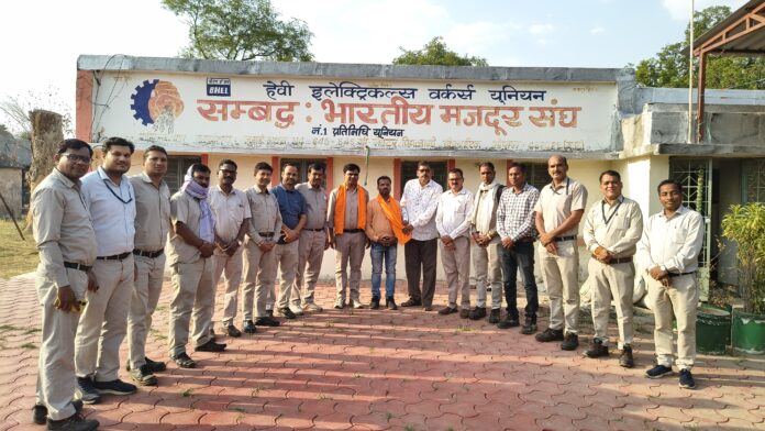 भोपाल। भारतीय मजदूर संघ से संबद्ध हेवु की साप्ताहिक बैठक सोमवार, 27 अप्रैल 2026 को जुमडे भवन में संपन्न हुई। कार्यकारी अध्यक्ष संजय चौधरी की अध्यक्षता में आयोजित इस बैठक में आगामी बोनस के मुद्दों पर विस्तार से चर्चा की गई और आवश्यक प्रस्ताव पारित किए गए।बैठक के मुख्य आकर्षण के रूप में बीएमएस भोपाल और नर्मदापुरम संभाग द्वारा आयोजित ‘नेतृत्व विकास वर्ग अभ्यास शिविर’ को सफलतापूर्वक पूर्ण कर लौटे दो ऊर्जावान कार्यकर्ताओं का सम्मान किया गया।