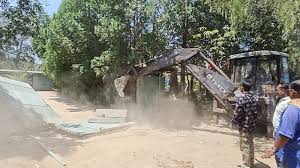 बड़े तालाब से अतिक्रमण हटाने की कार्रवाई फिर शुरू, कई अवैध निर्माण हटाए