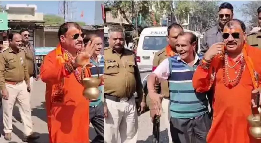 मक्सी नगर की सड़क चलते हुए टीआई पटेल लोगों को आर्शीवाद भी देते रहे। बच्चों ने उनके पैर छूकर आर्शीवाद भी लिया। सोमवार को सुरक्षा और कानून व्यवस्था को लेकर जिले का पुलिस अमला खासा सतर्क रहा है। वहीं, संवेदनशील क्षेत्रों में पुलिस बल की तैनाती रही है। ऐसे में टीआई पटेल का भगवा वस्त्र धारण कर त्रिशूल और कमंडल थामना चर्चा का विषय बना हुआ है।