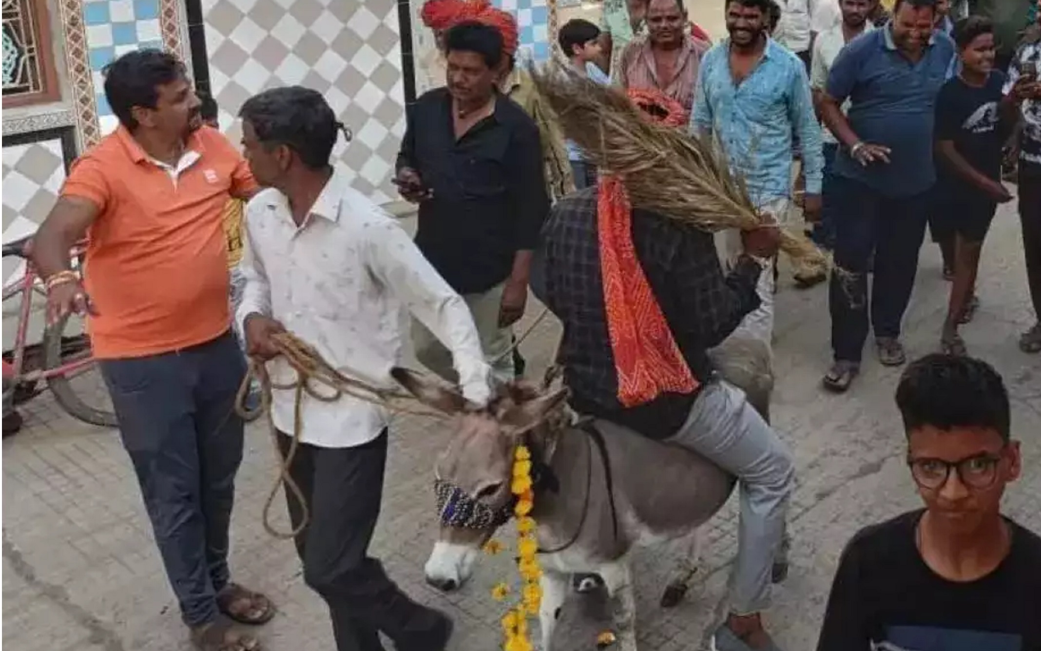 बारिश के लिए अनोखा टोटका: गांव के मुखिया को गधे पर उल्टा बैठाकर घुमाया