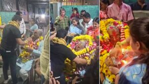 वीडियो देखें तो एक क्षण वो भी आता है जहां महेंद्र हार्डिया के ऊपर इतनी मालाएं डाल दी जाती हैं जिससे उन्हें बैठने तक में परेशानी होती दिख रही है. चूंकि वीडियो इंटरनेट पर वायरल है इसलिए इसपर एक से बढ़कर एक प्रतिक्रियाएं भी आ रही हैं.कुछ यूजर्स तो ऐसे भी हैं जो ये कह रहे हैं कि जिस इंसान के ऊपर फूल मालाओं का पहाड़ हो, यक़ीनन वो सांस भी नहीं ले पा रहा होगा. वीडियो के अंत में महिलाओं को महेंद्र हार्डिया की आरती करते हुए भी देखा जा सकता है.