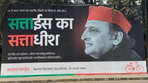 लखनऊ में समाजवादी पार्टी के दफ्तर के बाहर लगे पोस्टर अकसर चर्चाओं में रहते हैं. कभी अखिलेश को देश का भावी प्रधानमंत्री तो कभी उनकी पत्नी डिंपल यादव को यूपी का भावी मुख्यमंत्री बताने वाले पोस्टर लगाए जा चुके हैं, लेकिन इस बार जो पोस्टर चर्चा में आया है, उसे संत कबीर नगर के सपा नेता जयराम पांडे ने लगवाया है. उन्होंने अखिलेश यादव को फोटो के साथ पोस्टर पर लिखवाया है- सत्ताईस में सत्ताधीश. ये पोस्टर सोशल मीडिया पर खूब वायरल हो रहा है.