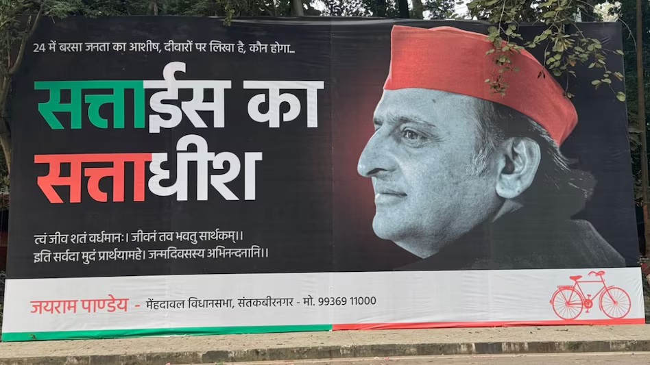 संत कबीर नगर की मेहंदावल विधानसभा सीट से समाजवादी पार्टी की टिकट के दावेदार जयराम पांड ने सपा कार्यालय के बाहर जो पोस्टर लगवाया है, उसमें लिखा है- “24 में बरसा जनता का आशीष, दीवारों पर लिखा है, कौन होगा सत्ताईस का सत्ताधीश.” जयराम पांडे के इस पोस्टर की सोशल मीडिया पर खूब चर्चा हो रही है.
