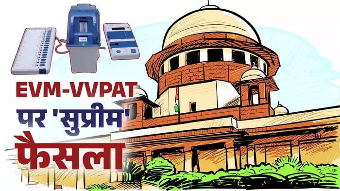 सुप्रीम कोर्ट ने इलेक्ट्रॉनिक वोटिंग मशीन (ईवीएम) के वोटों का वोटर वेरिफिएबल पेपर ऑडिट ट्रेल (वीवीपीएटी) पर्चियों से 100 फीसदी सत्यापन की मांग वाली सभी याचिकाएं खारिज कर दीं। जस्टिस संजीव खन्ना और जस्टिस दीपांकर दत्ता की दो जजों की पीठ ने सर्वसम्मति से फैसला सुनाया। कोर्ट ने बैलेट पेपर से चुनाव कराने की मांग भी खारिज कर दी। मामले की सुनवाई करते हुए कोर्ट ने कहा कि उम्मीदवार चाहे तो चुनाव परिणाम घोषित होने के सात दिन के भीतर रिजल्ट की दोबारा जांच की मांग कर सकता है। ऐसी स्थिति में माइक्रो कंटोलर की मेमोरी की जांच इंजीनियर के द्वारा की जाएगी।