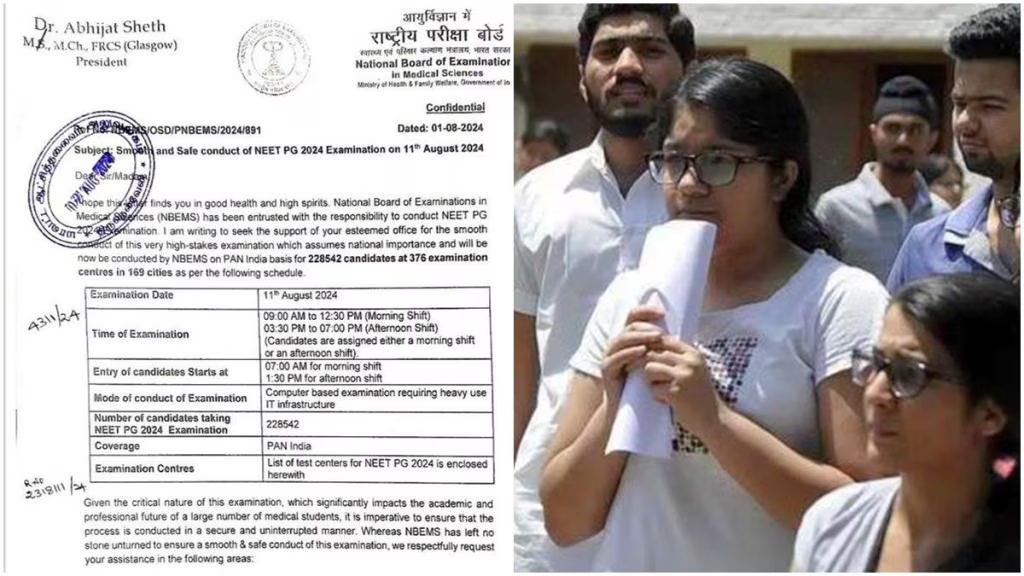 सोशल मीडिया पर लीक हुए लेटर में NBEMS के अध्यक्ष डॉ. अभिजीत सेन के हस्ताक्षर हैं, जो नीट पीजी परीक्षा केंद्रों की मेजबानी करने वाले विभिन्न क्षेत्रों के जिलाधिकारियों को संबोधित करता है। लेटर में संबंधित जिला प्रशासन से परीक्षा के सुचारू और सुरक्षित संचालन को सुनिश्चित करने का आग्रह किया गया है।