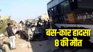 अजमेर हाईवे पर एक भयानक सड़क हादसे में आठ लोगों की जान चली गई। गुरुवार दोपहर करीब 3:45 बजे मौखमपुरा के पास एक रोडवेज बस का टायर फट गया। इससे बस बेकाबू होकर डिवाइडर तोड़ते हुए सामने से आ रही एक ईको कार से टकरा गई। कार में सवार सभी आठ लोग भीलवाड़ा के रहने वाले थे और प्रयागराज जा रहे थे। हादसे में सभी की मौके पर ही मौत हो गई। छह लोग घायल भी हुए हैं।