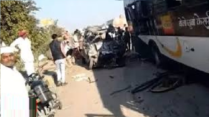 हाईवे पर बेकाबू बस ने मारी कार को टक्कर