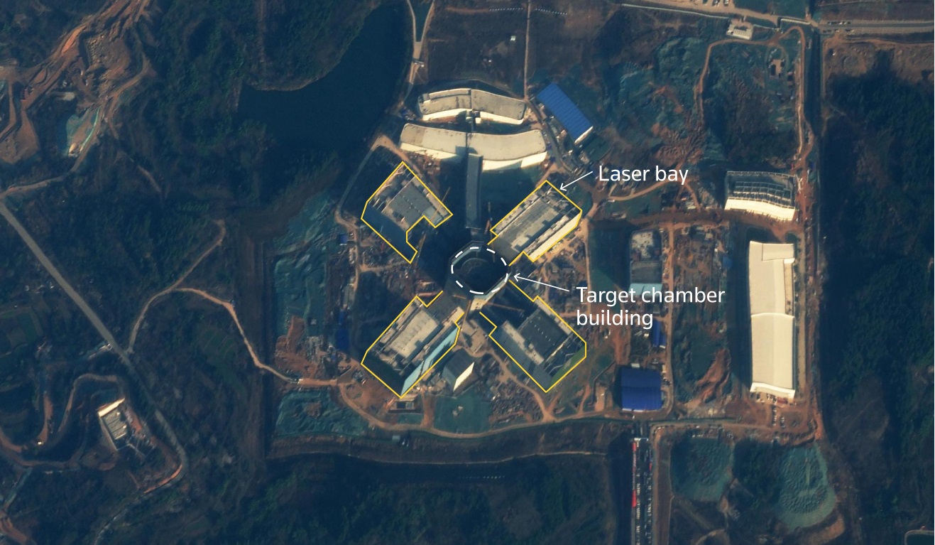 दो विश्लेषणात्मक संगठनों के विशेषज्ञों का कहना है कि चीन दक्षिण-पश्चिमी शहर मियांयांग में एक विशाल लेजर-इग्नाइटेड फ्यूजन रिसर्च सेंटर का निर्माण कर रहा है। यह एक ऐसा डेवलपमेंट है जो परमाणु हथियारों के डिजाइन और बिजली उत्पादन की खोज में सहायता कर सकता है। सैटेलाइट तस्वीरों में रिसर्च सेंटर की चार बाहरी “भुजाएं” दिखाई देती हैं, जिनमें लेजर बे और एक सेंट्रल एक्सपेरिमेंटल बे होगा। इस सेंट्रल एक्सपेरिमेंटल बेमें हाइड्रोजन आइसोटोप युक्त एक टारगेटिंग चेंबर होगा, जहां शक्तिशाली लेजर आपस में मिलकर ऊर्जा उत्पन्न करेंगे।