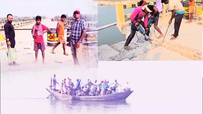 कटिहार-लाभा पुल में दरार: 200 करोड़ का पुल, फिर भी जान जोखिम में डालकर महानंदा नदी पर नाव से यात्रा