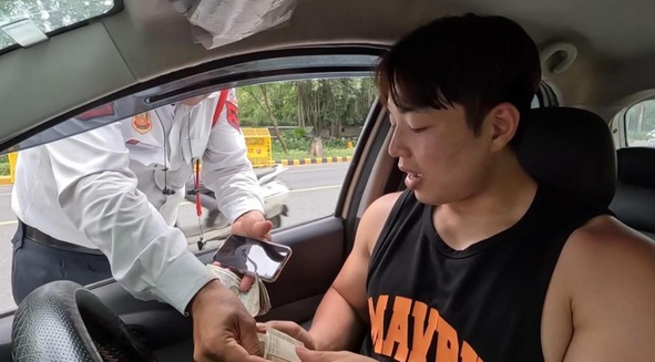 कोरियाई शख्स अपनी जेब से पांच हजार रुपए निकालकर देता है। दिल्ली पुलिस का जवान पांच सौ रुपए उसे वापस कर देता है और बाकी के पैसे बिना रसीद दिए ही लेकर निकल गया। कोरियाई शख्स की गाड़ी में लगे कैमरे में यह पूरा प्रकरण कैद हो गया। जब वीडियो सोशल मीडिया पर वायरल हुआ तो दिल्ली पुलिस पर सवाल उठने लगे।