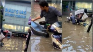 सोशल मीडिया पर हादसे से ठीक पहले का एक वीडियो वायरल है, जिसमें सामान्य बारिश के बाद ओल्ड राजेंद्र नगर की बदहाल स्थिति नजर आ रही है. यह वीडियो RAU’s IAS Study Circle के ठीक सामने से ही किसी ने अपने फोन में शूट किया है, जिसमें चारों तरफ पानी ही पानी नजर आ रहा है. कोचिंग सेंटर रोड के ठीक बगल में स्थित है. वीडियो में देखा जा सकता है कि सड़क पर कमर भर पानी लगा है. इतना पानी है कि बाइक और स्कूटी लगभग डूब जा रही हैं. वायरल वीडियो में RAU’s IAS कोचिंग सेंटर का एंट्री गेट बंद नजर आ रहा है.