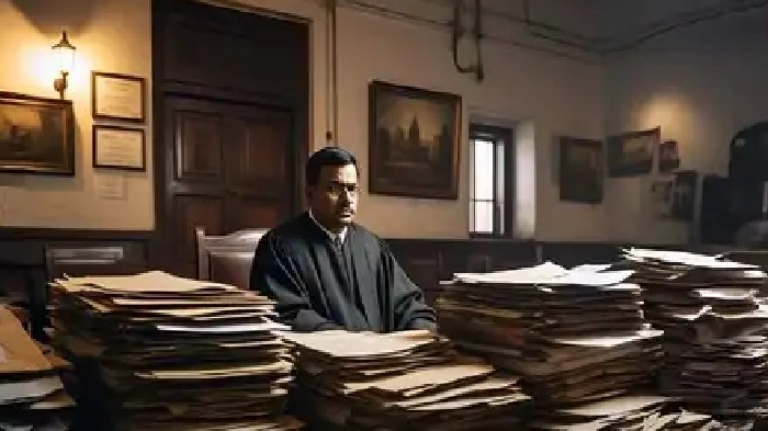 कोर्ट रूम में फाइलों का ढेर