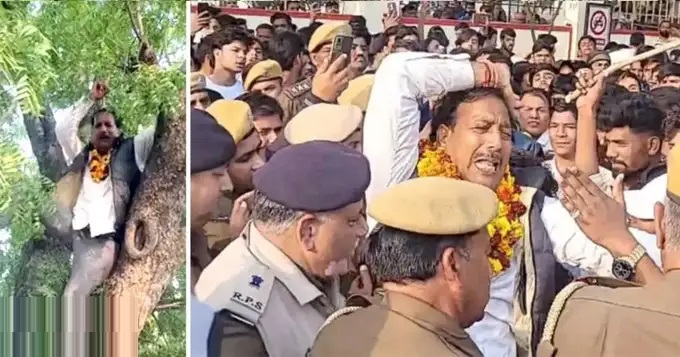 दरअसल, पूर्व मंत्री राजेंद्र गुढ़ा के नेतृत्व में मंडावा कस्बे से झुंझुनूं जिला कलेक्ट्रेट तक सैकड़ों लोगों ने जन आक्रोश रैली निकाली। यह रैली मंडावा से शुरू होकर करीब 30 किमी की पैदल यात्रा के बाद शाम चार बजे झुंझुनूं पहुंची। झुंझुनूं पहुंचने पर लोगों ने अपनी मांगों को लेकर प्रदर्शन किया और पुलिस प्रशासन पर दस दिन पहले लाइब्रेरी में हुई मारपीट के मामले में एकतरफा कार्रवाई का आरोप लगाते हुए विरोध दर्ज कराया। इस दौरान पुलिस की कार्यप्रणाली पर भी सवाल उठाए गए। प्रदर्शन के दौरान पुलिस और प्रदर्शनकारियों के बीच टकराव की स्थिति उत्पन्न हो गई। इस बीच, लाठीचार्ज की अफवाह फैलते ही प्रदर्शनकारियों में अफरा-तफरी मच गई और वे इधर-उधर भागने लगे। इसी दौरान, पूर्व मंत्री राजेंद्रसिंह गुढ़ा एक नीम के पेड़ पर चढ़ गए और वहीं से अपने संबोधन को जारी रखा।