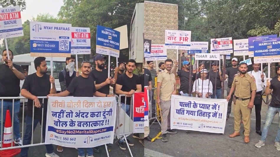 राजधानी दिल्ली में अक्सर अपनी मांगों को लेकर कई तरह के संगठन धरना प्रदर्शन करते हैं. अपनी बात सरकार तक पहुंचाते हैं. कई बार विरोध में भी प्रदर्शन किए जाते हैं. दिल्ली में इस तरह के धरना प्रदर्शन यूं तो आम बात हैं. लेकिन रविवार को जवाहर लाल नेहरू स्टेडियम के बाहर एक ऐसा प्रदर्शन हुआ, जिसने सबका ध्यान अपनी तरफ खींचा. खासकर प्रदर्शनकारियों के नारों और तख्तियों ने. दरअसल, ये प्रदर्शन किसी सियासी संगठन या पार्टी का नहीं था, बल्कि ये था पत्नियों से पीड़ित पतियों का प्रदर्शन. ये लोग मैरिटल रेप कानून का विरोध कर रहे थे.