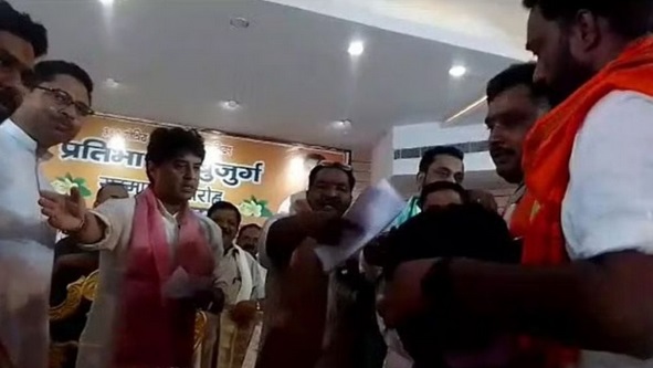 शनिवार, 29 जुलाई को मध्यप्रदेश के ग्वालियर के महावीर भवन में एक कार्यक्रम के दौरान कुछ ऐसा हुआ कि सब चौंक गए। केंद्रीय मंत्री ज्योतिरादित्य सिंधिया कार्यकर्ताओं से मुलाकात कर रहे थे और खटीक समुदाय के कुछ सदस्यों ने उन्हें एक बकरा भेंट किया। यह देखकर वह असहज हो गए और बकरे को छू कर बाहर ले जाने को कहा। इस पूरे मामले का वीडियो सोशल मीडिया पर वायरल हो रहा है।