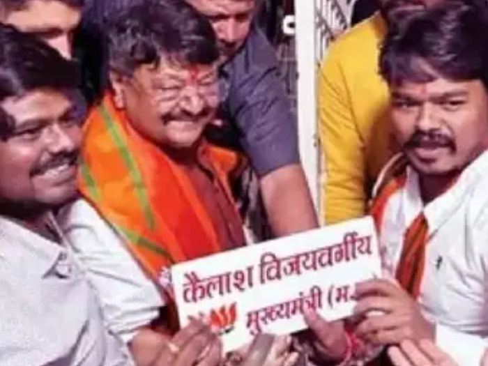 बीजेपी के राष्ट्रीय महासचिव कैलाश विजयवर्गीय इंदौर-1 विधानसभा सीट से चुनाव जीत गए हैं। इसके साथ ही इंदौर जिले में कांग्रेस का सूपड़ा साफ हो गया है। जिले की सभी नौ सीटों पर बीजेपी को जीत मिली है। कैलाश विजयवर्गीय की जीत से उनके समर्थक काफी उत्साहित हैं। उन्हें मुख्यमंत्री बनाने की मांग करने लगे हैं। रिजल्ट घोषित होने के बाद एक समर्थक उन्हें मुख्यमंत्री लिखा नेम प्लेट दे दिया है।
