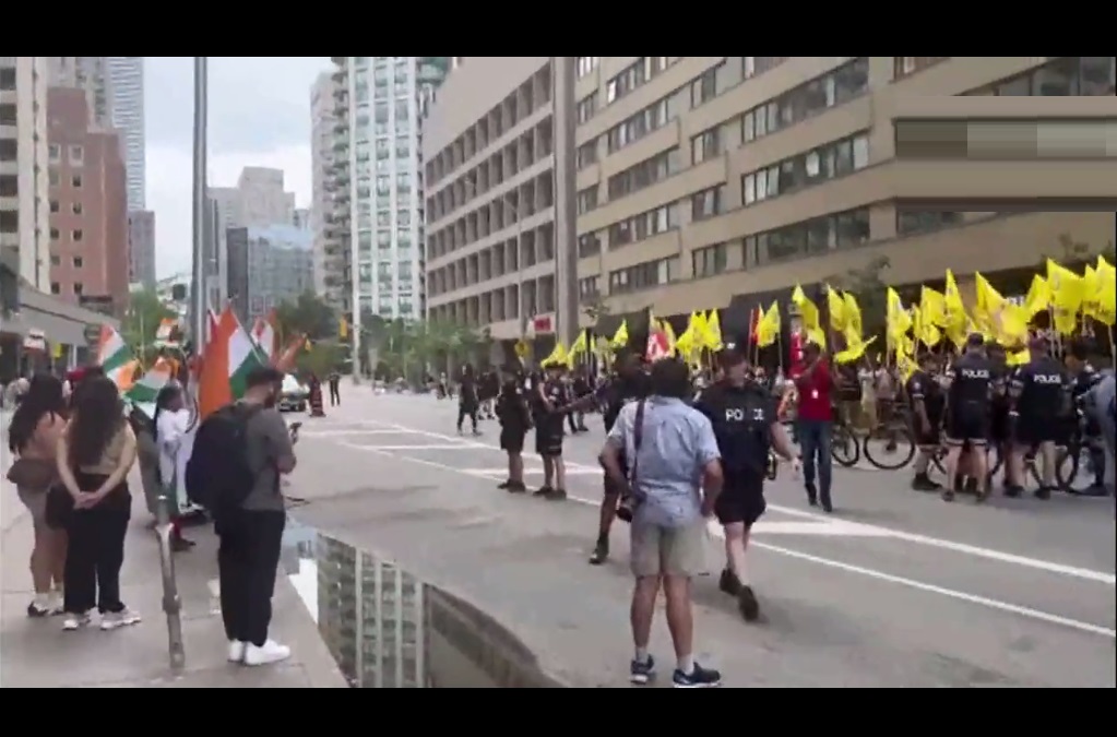 कनाडा में शनिवार को टोरंटो में भारतीय वाणिज्यिक दूतावास के बाहर खालिस्तान समर्थक और भारतीय आमने सामने आ गए। खालिस्तान समर्थकों ने अपने हाथ में पीला झंडा ले रखा था। वहीं भारतीय तिरंगा लहरा रहे थे। यह प्रदर्शन तब हो रहा है जब खालिस्तानी आतंकी हरदीप सिंह निज्जर की कनाडा में गोली मार कर हत्या कर दी गई थी। निज्जर की हत्या का अभी तक खुलासा नहीं हो सका है। इसके बाद टोरंटो में भारतीय राजनयिकों को निशाना बनाने वाले धमकी भरे पोस्टर देखने को मिले हैं।