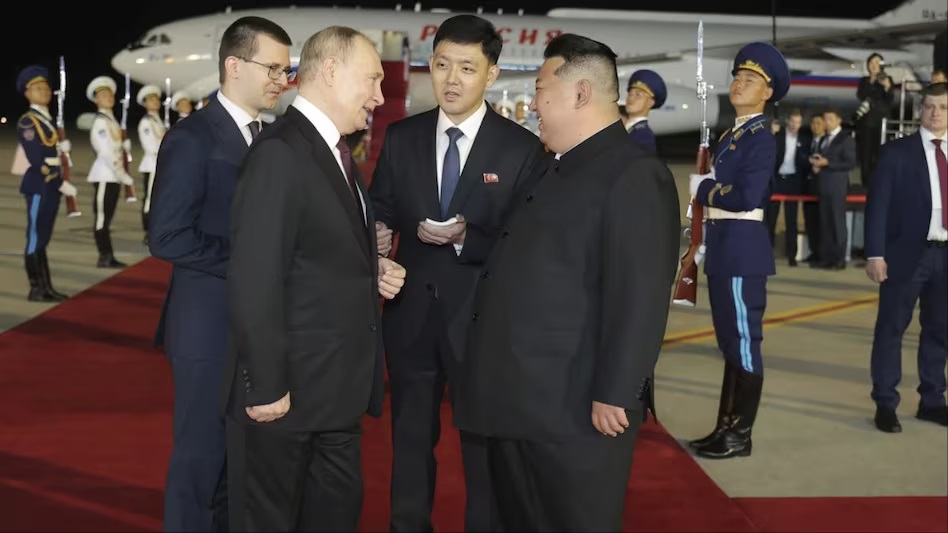 उत्तर कोरियाई नेता किम जोंग उन ने प्योंगयांग के एयरपोर्ट पर पुतिन से मुलाकात की. उत्तर कोरिया की आधिकारिक कोरियन सेंट्रल न्यूज एजेंसी ने कहा कि उन्होंने हाथ मिलाया और गले मिले और बाद में किम पुतिन के साथ कार में बैठकर उन्हें प्योंगयांग के कुमसुसन स्टेट गेस्ट हाउस तक ले गए. एजेंसी ने उनकी मुलाकात को एक ऐतिहासिक घटना बताया जो दोनों देशों की दोस्ती और एकता की ‘अजेयता और स्थायित्व’ को दिखाती है.