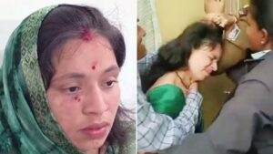 महिला सरपंच को बाल पकड़कर पीटा