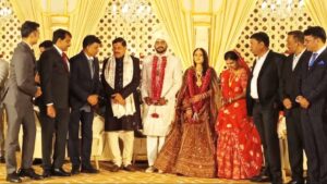 दूल्हा बने पुत्र वैभव और दुल्हन शालिनी यादव के साथ CM मोहन यादव.