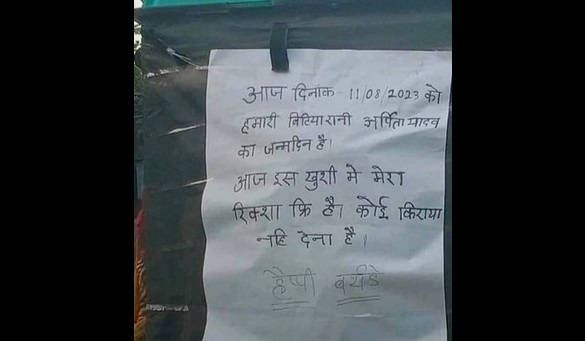 उन्होंने सफेद कागज पर हाथ से लिखा, ‘आज दिनांक 11 अगस्त 2023 को हमारी बिटिया रानी अर्पिता यादव का जन्मदिन है। आज इस खुशी में मेरा रिक्शा फ्री है। कोई किराया नहीं देना है। हैप्पी बर्थडे।’ उनके रिक्शे पर यह मैसेज पढ़कर लोगों ने तारीफ की। रविंदर ने लिखा कि जन्मदिन मनाने का शौक रखते हों तो कुछ इस तरह मनाइए।