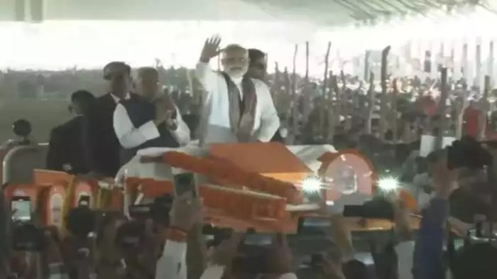 इससे पहले पीएम मोदी पहले पूर्णिया एयरपोर्ट उतरे, फिर हेलिकॉप्टर से भागलपुर पहुंचे। भागलपुर में पीएम मोदी का स्वागत सीएम नीतीश कुमार ने किया। इसके बाद दोनों नेताओं ने रोड शो किया। रोड शो के दौरान दौरान दोनों नेताओं ने एनडीए एकता का परिचय दिया। 2025 के विधानसभा चुनाव से पहले पीएम मोदी का नए साल में पहला बिहार दौरा है।