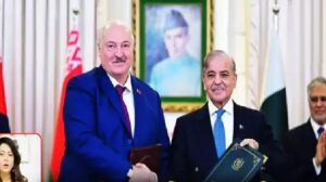 बेलारूस के राष्ट्रपति अलेक्जेंडर लुकाशेंको ने पाकिस्तान का दौरा किया है। लुकाशेंको सोमवार को पाकिस्तान के तीन दिन के दौरे पर इस्लामाबाद पहुंचे थे। उन्होंने पाकिस्तान के प्रधानमंत्री शहबाज शरीफ से मुलाकात की। इस दौरान दोनों नेताओं ने आर्थिक समेत कई क्षेत्रों में सहयोग को मजबूत करने पर सहमति जताई। पाक पीएम शहबाज शरीफ ने प्रोटोकॉल तोड़ते हुए इस्लामाबाद में बेलारूस के राष्ट्रपति अलेक्जेंडर लुकाशेंको का स्वागत किया और उनको खास दोस्त भी बनाया। वह लुकाशेंको से कश्मीर मुद्दे पर भी भारत विरोधी बयान दिलाना चाहते थे लेकिन उन्होंने शरीफ को झटका देते हुए ऐसा करने से इनकार कर दिया।