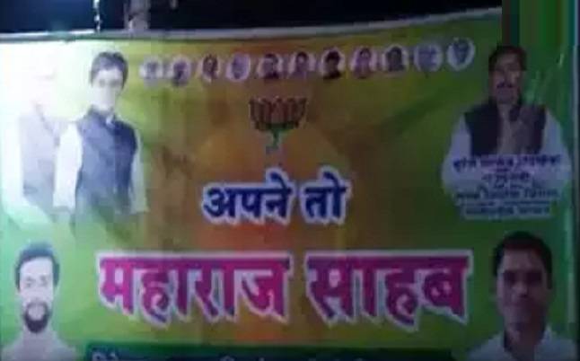 मंगलवार को पोहरी में आदिवासी सम्मेलन में भाग लेने के लिए मुख्यमंत्री शिवराज सिंह चौहान और केंद्रीय मंत्री ज्योतिरादित्य सिंधिया आ रहे हैं। इन दोनों नेताओं के आगमन से पहले इस बैनर से बीजेपी की आपसी गुटबाजी सामने आ गई है। बैनर में लिखा गया है कि अपने तो महाराज-। इस बैनर में साफ तौर पर लिखा गया है कि अपने तो महाराज। इस बैनर में यूं तो राठखेड़ा के आका ज्योतिरादित्य सिंधिया और प्रदेश के मुखिया शिवराज का फोटो समान और साथ-साथ विराजित है, लेकिन बैनर की शब्दावली में मुखिया का दूर-दूर तक नाम तक नहीं है।