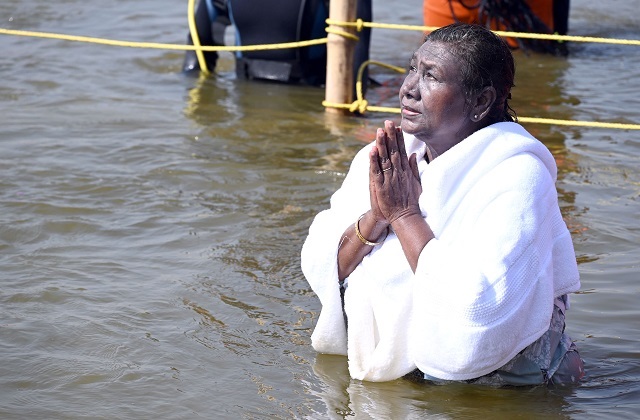 राष्ट्रपति द्रौपदी मुर्मू ने संगम में पवित्र डुबकी लगाई। पवित्र स्नान के बाद उन्होंने पूजा-अर्चना की। इससे पहले, भारत की प्रथम नागरिक, राष्ट्रपति द्रौपदी मुर्मू का तीर्थराज कुंभ नगरी प्रयाग में आगमन पर प्रयागराज के प्रथम नागरिक महापौर उमेश चंद्र गणेश केसरवानी ने प्रयागराज महानगर की चाबी भेंट कर उनका स्वागत किया।