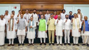 प्रस्ताव में कहा गया कि 2024 भारत के 140 करोड़ देशवासियों ने पिछले 10 वर्षों में प्रधानमंत्री नरेंद्र मोदी के नेतृत्व में एनडीए सरकार की जनकल्याणकारी नीतियों से देश को हर क्षेत्र में विकसित होते देखा है. बहुत लंबे अंतराल, लगभग 6 दशक के बाद भारत की जनता ने लगातार तीसरी बार पूर्ण बहुमत से सशक्त नेतृत्व को चुना है. हम सभी को गर्व है कि 2024 का लोकसभा चुनाव एनडीए ने नरेंद्र मोदी के नेतृत्व में एकजुटता से लड़ा और जीता. हम सभी एनडीए के नेता नरेंद्र मोदी को सर्वसम्मति से अपना नेता चुनते हैं.बैठक में प्रधानमंत्री मोदी ने सभी नेताओं से कहा, बधाई हो, सभी ने अच्छा संघर्ष किया. एनडीए अब देश के विकास के लिए काम करेगा. हम लोगों के लिए अपना काम जारी रखेंगे.