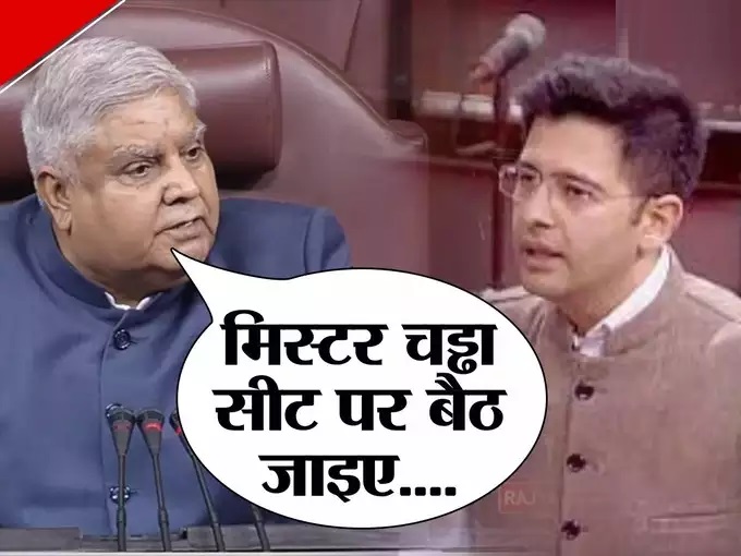 जगदीप धनखड़ हंगामा मचा रहे राघव चड्ढा को बैठने के लिए बोले। राघव बार-बार अपनी कुर्सी से उठकर बोले रहे थे।धनखड़ ने राघव चड्ढा से कहा कि क्‍या आपकी सीट में कुछ गड़बड़ है।धनखड़ ने राघव से कहा कि जब दूसरे सदस्‍य बोल रहे हों तो अपनी कुर्सी पर बैठें। यह सदन की न्‍यूनतम आवश्यकता है।