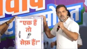 राहुल का कहना था कि मोदी जी ने नारा दिया ‘एक है तो सेफ हैं’. उसके बाद राहुल ने अडानी और पीएम मोदी की तस्वीरों वाले लॉकर (तिजोरी) को खोला और धारावी पुनर्विकास का नक्शा दिखाया. राहुल का आरोप है कि नारे का मतलब है मुंबई की किस्मत निशाने पर है.