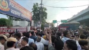 पश्चिमी दिल्ली के नांगलोई में मुहर्रम जुलूस में भीड़ की पुलिस के साथ झड़प हो गई थी. इस घटना के बाद इलाके में तनाव बना हुआ है. रविवार को हिंदूवादी संगठनों ने नांगलोई पुलिस स्टेशन के बाहर जमकर विरोध प्रदर्शन किया और नारे लगाए. उन्होंने उपद्रवियों की गिरफ्तारी की मांग की. यह प्रदर्शन करीब आधे घंटे तक चला और क्षेत्र में ‘देश के गद्दारों को, गोली मारो… को नारे लगाए. इलाके में ‘जय श्री राम’ के नारे भी गूंजते रहे.